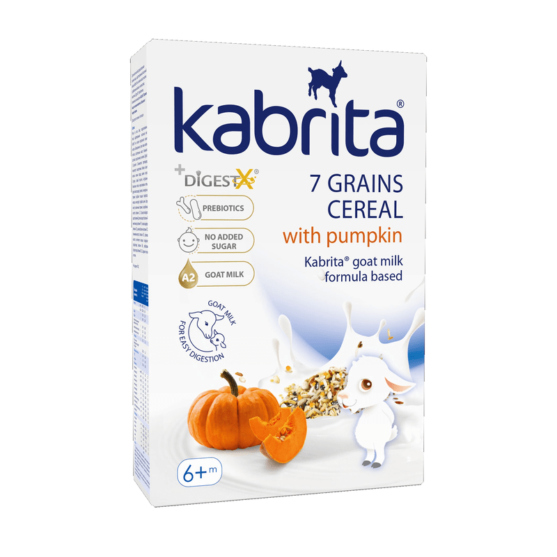 Give your little one a delicious, wholesome start with Kabrita 7 Grains Baby Cereal with Pumpkin — a soft, creamy porridge crafted from seven nourishing grains and naturally sweet pumpkin, all blended with Kabrita's signature A2 goat milk formula.